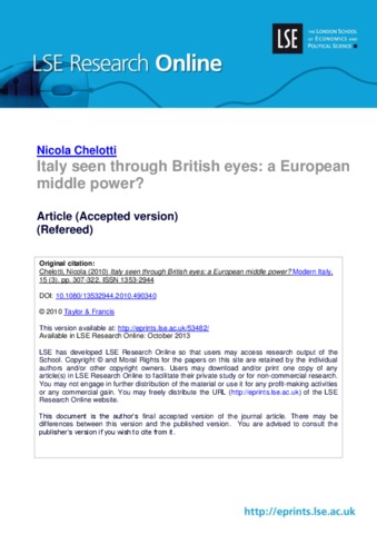 Italy seen through British eyes: a European middle power?
